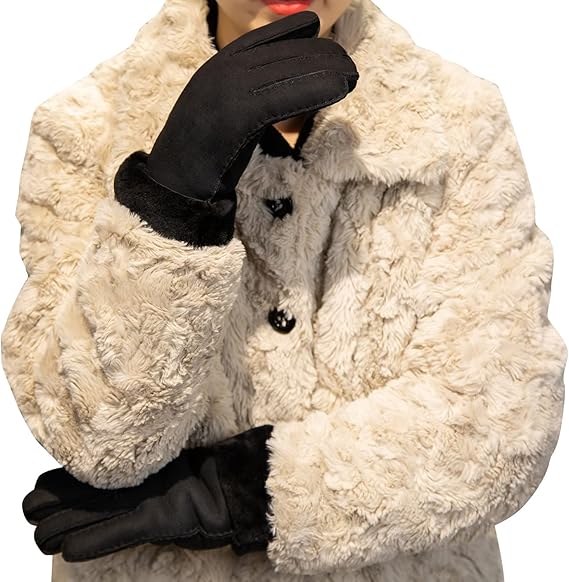 Winter Women's Merino Sheepskin Wool Gloves Thick Warm Cold Weather Shearling Gloves Driving Outdoor Activity Mitten
