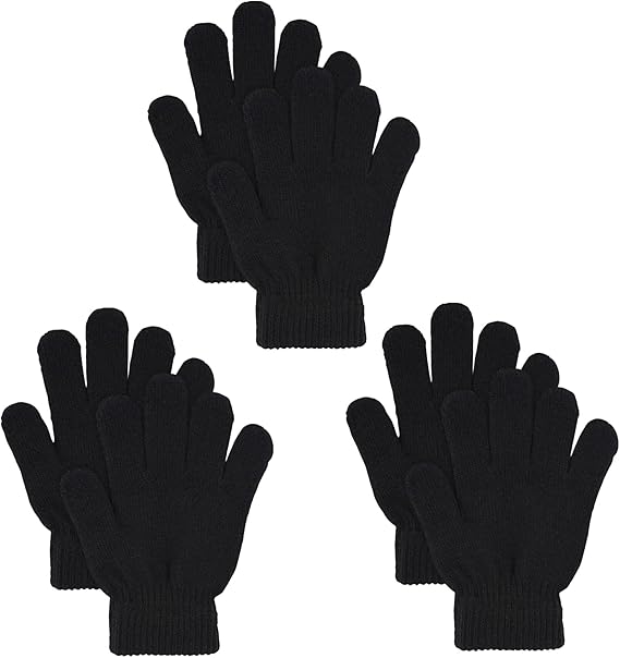 3 Pairs Winter Magic Gloves Warm Strecty Knit Gloves For Men Women in Common Size, Black