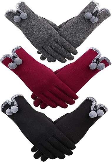 3 Pairs Women Warm Gloves Touchscreen Windproof Gloves for Winter
