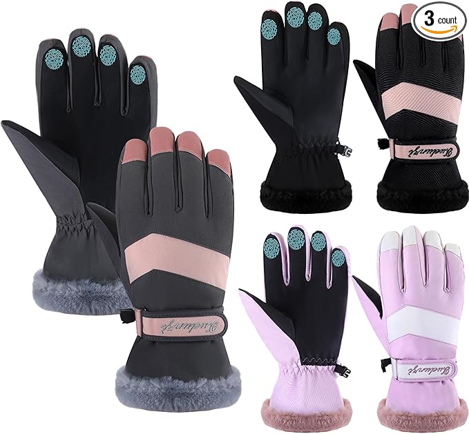 3 Pair Winter Ski Gloves Waterproof Skiing Snow Gloves Touchscreen Snowmobile Warm Gloves for Women Snowboarding Cold Weather