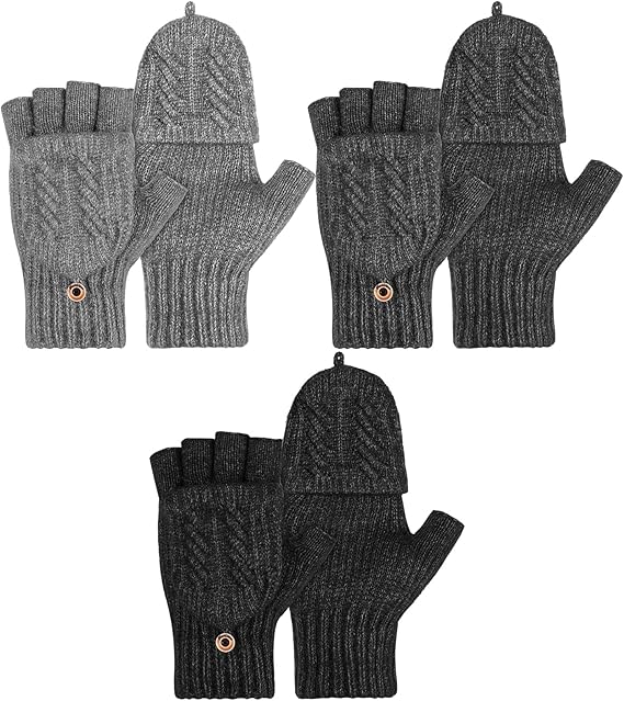 3 Pairs Winter Knitted Convertible Fingerless Gloves Knit Flip Fingerless Gloves with Fingers Gloves with Cover for Women Men
