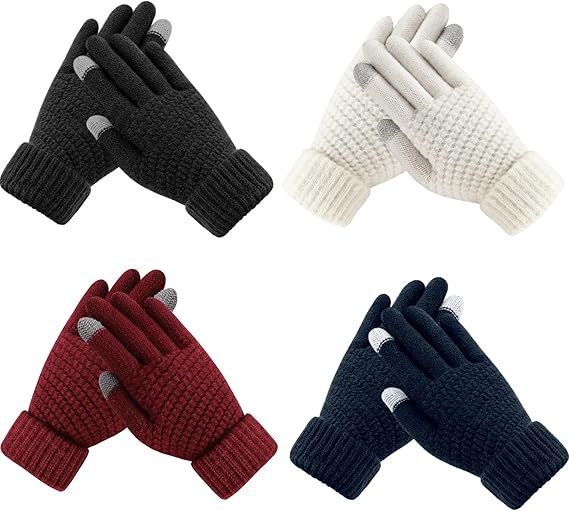 4 Pairs Womens Winter Gloves Warm Touch Screen Knit Fleece Gloves for Women Cold Weather