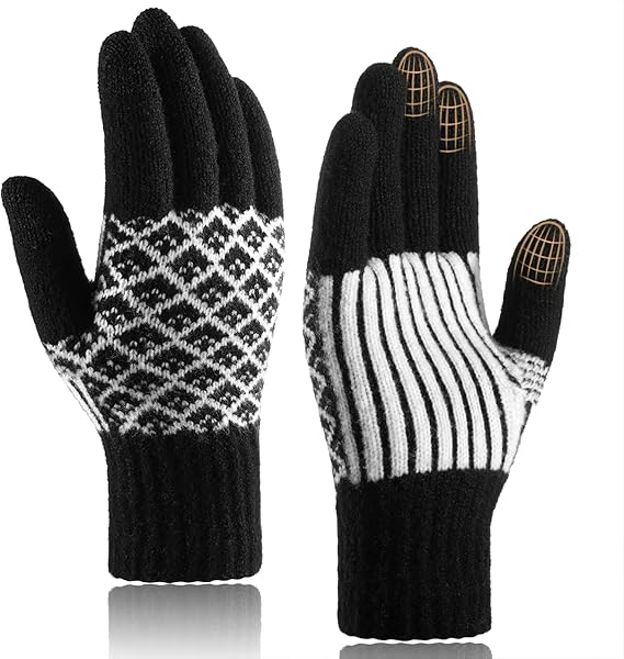 Wool Winter Gloves Men Women Fleece lined Knit Gloves with Touchscreen Fingers Insulated Gloves Keep Hand Warm cold weather