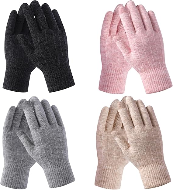 4 Pairs Winter Knit Touchscreen Gloves Warm Texting Gloves Elastic Anti-slip Gloves for Adults